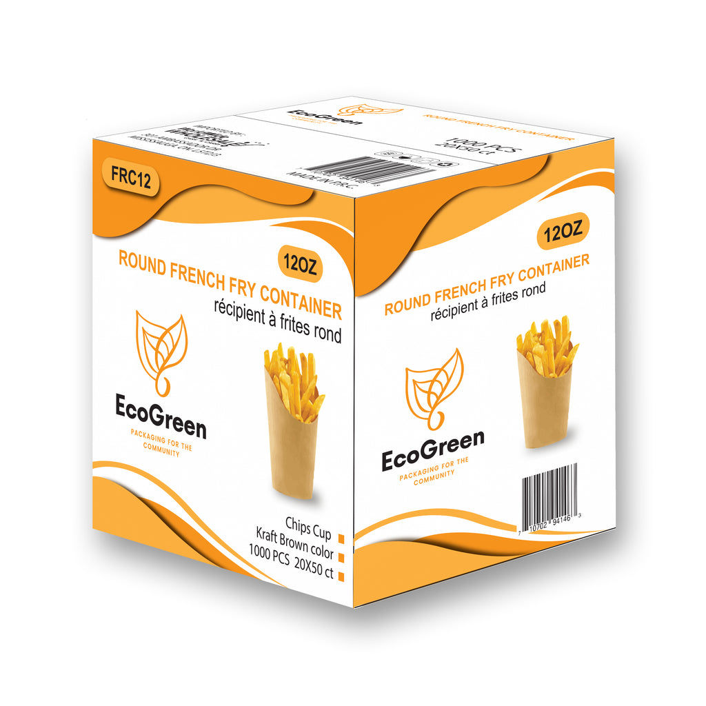 EcoGreen 12oz French Fries Cup offers a sustainable packaging solution made from eco-friendly materials. Designed for single servings, this cup combines durability with environmental responsibility, making it ideal for foodservice businesses aiming to reduce their carbon footprint without compromising convenience or presentation. Its sturdy construction ensures fries stay secure and fresh, enhancing the customer experience while supporting green practices.