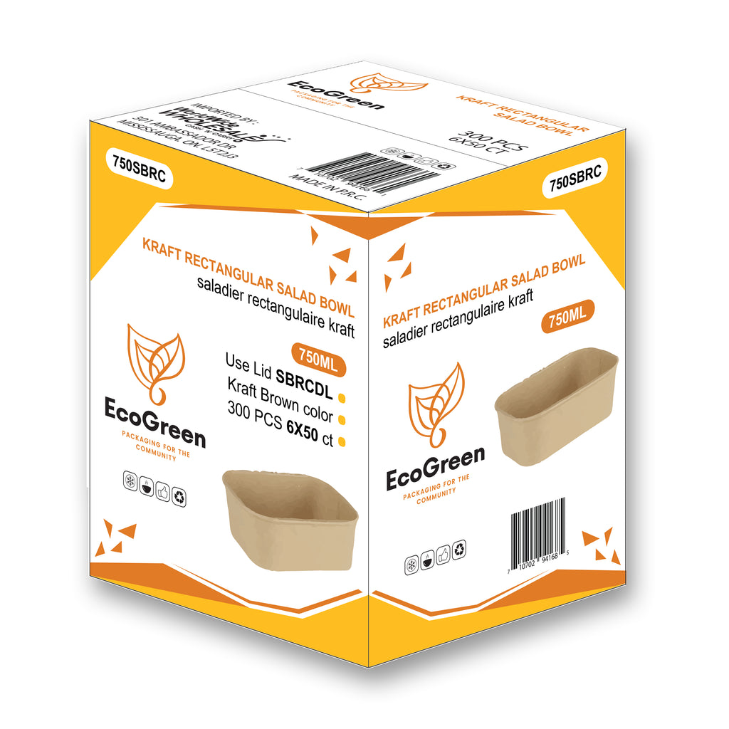 The EcoGreen Kraft Salad Bowl offers a sustainable solution for your meal needs with its 750ml rectangular design. Made from eco-friendly kraft material, it combines durability with biodegradability, making it ideal for serving salads while minimizing environmental impact. Its sturdy construction ensures reliable use for both cold and room-temperature foods, supporting a greener lifestyle without compromising convenience or quality.