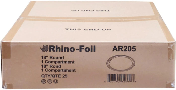 This 18-inch foil round serving tray offers a sturdy, lightweight solution ideal for serving a variety of dishes at gatherings or events. Its disposable design ensures easy cleanup without compromising on durability, making it perfect for catering professionals and busy hosts alike. Crafted to withstand the demands of both hot and cold foods, this tray combines convenience with reliable performance.