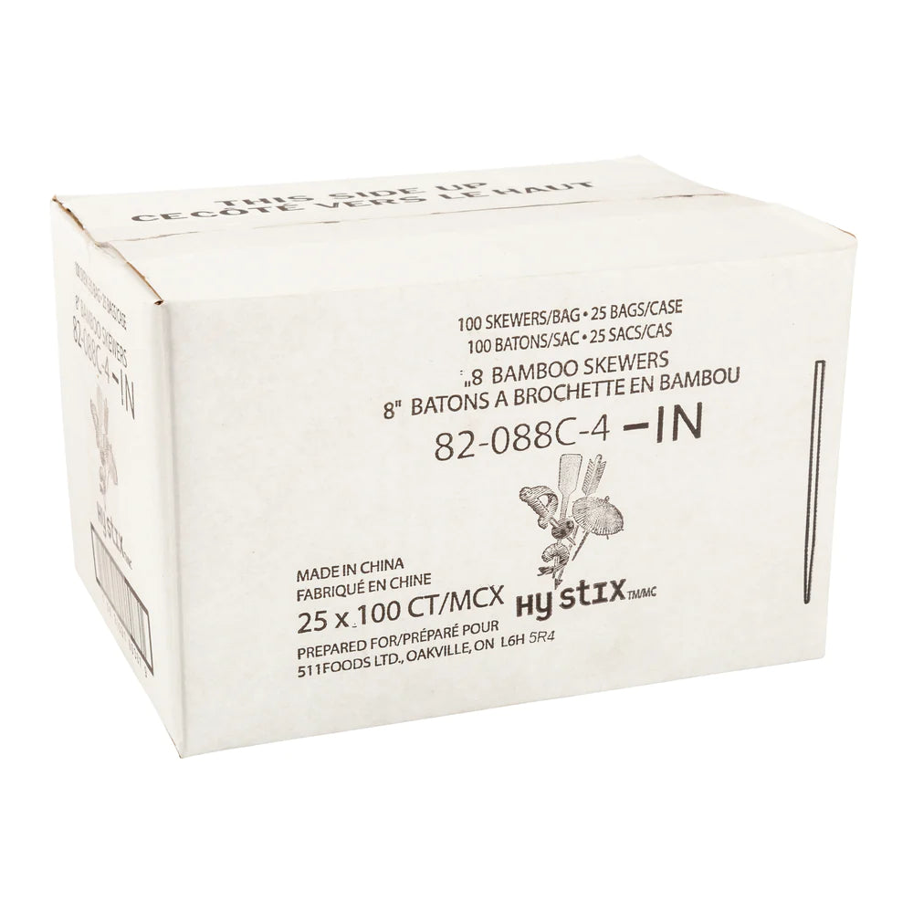 Crafted from durable bamboo, the Hy Stix 8" skewer offers a strong, natural option for grilling and serving kebabs, vegetables, or appetizers. Its 8-inch length provides ample space for even cooking, while the smooth finish ensures food stays securely in place. Ideal for both professional chefs and home cooks seeking a reliable, eco-friendly skewer for precise grilling control.