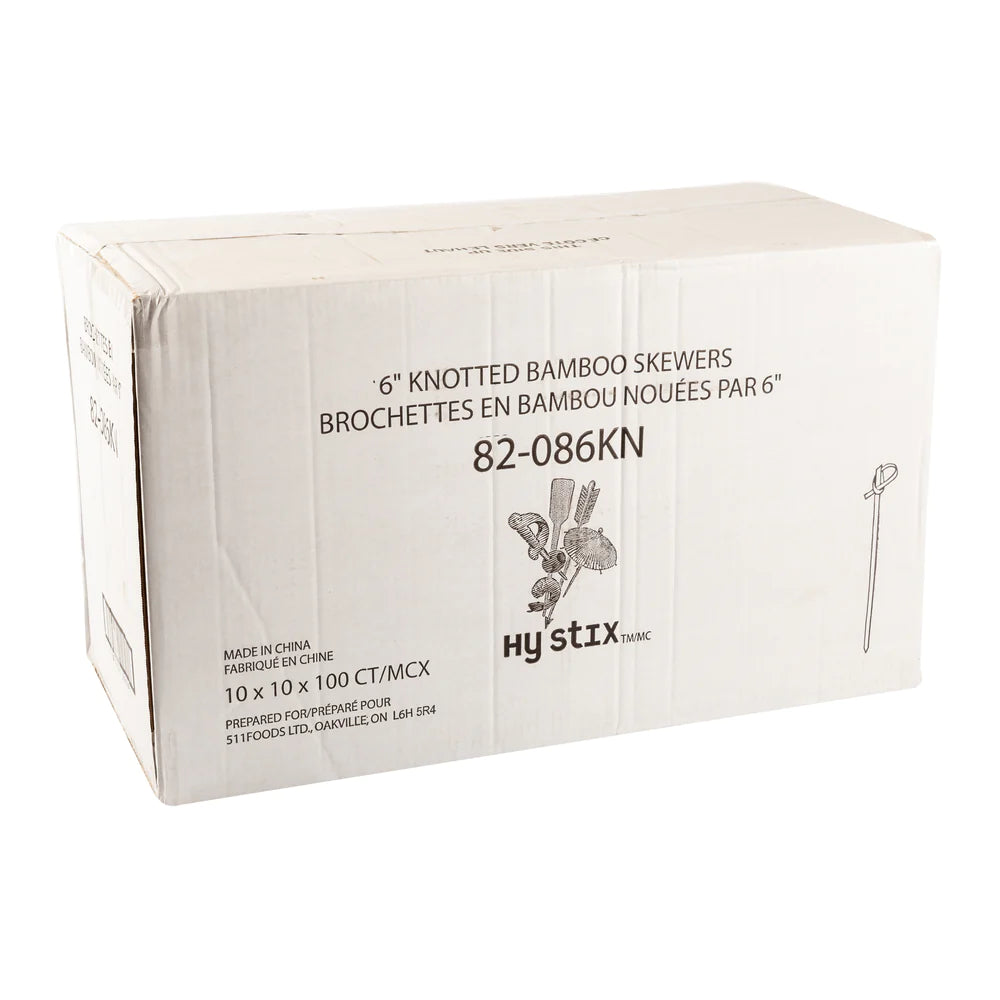 Crafted from durable bamboo, the Hy Stix Skewer Knotted Bamboo 4" offers reliable performance for grilling and serving. Its knotted design provides a secure grip, preventing food from slipping during cooking or presentation. Perfect for appetizers, kebabs, or finger foods, these skewers combine strength and practicality in a compact size. Ideal for professional and home kitchens alike, they ensure precise handling and consistent results.