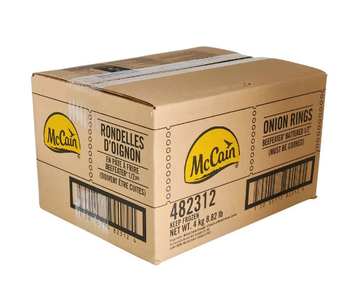 Crunch into fun with McCain Battered 1/2'' Onion Rings! These crispy, golden-fried rings bring a perfect crunch and mild onion flavor to every bite, making snack time or mealtime a blast. Whether dipped or devoured solo, they add a tasty twist that’s hard to resist. Perfectly sized and irresistibly crunchy—get ready to ring in the deliciousness!